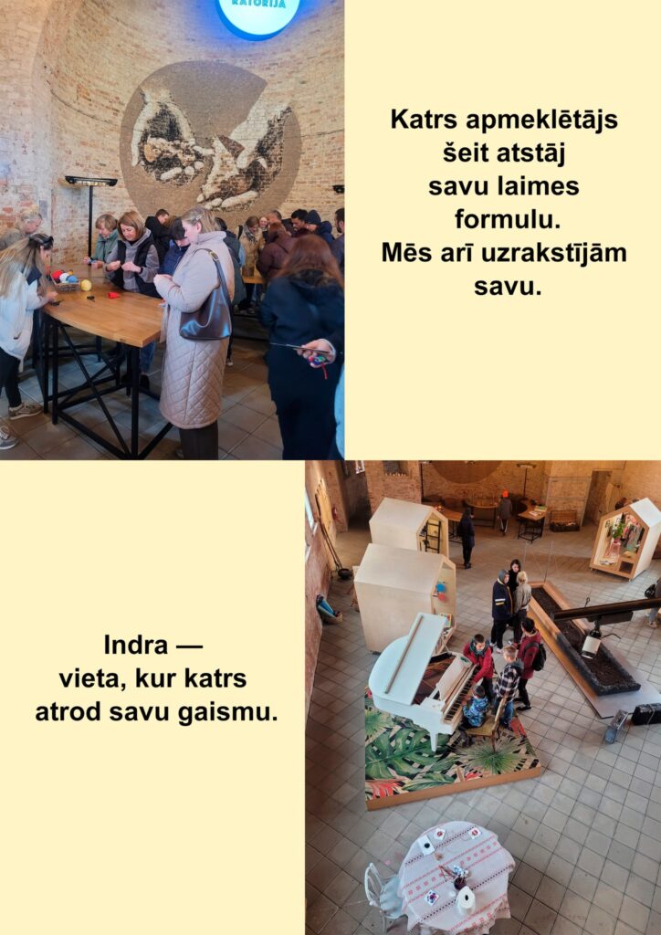 Apmeklētāji iepazīst laimes sajūtu ar visām maņām — redzi, skaņu, smaržu, garšu un pieskārienu.