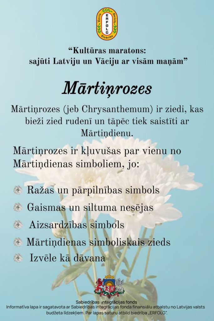 Mārtiņdiena ir rudens svētki, kas vēsta par ražas beigām, ziemas tuvošanos un ģimenes siltumu. Šajā dienā mājas rotā Mārtiņrozes, kas simbolizē laimi, veselību un aizsardzību ģimenei.