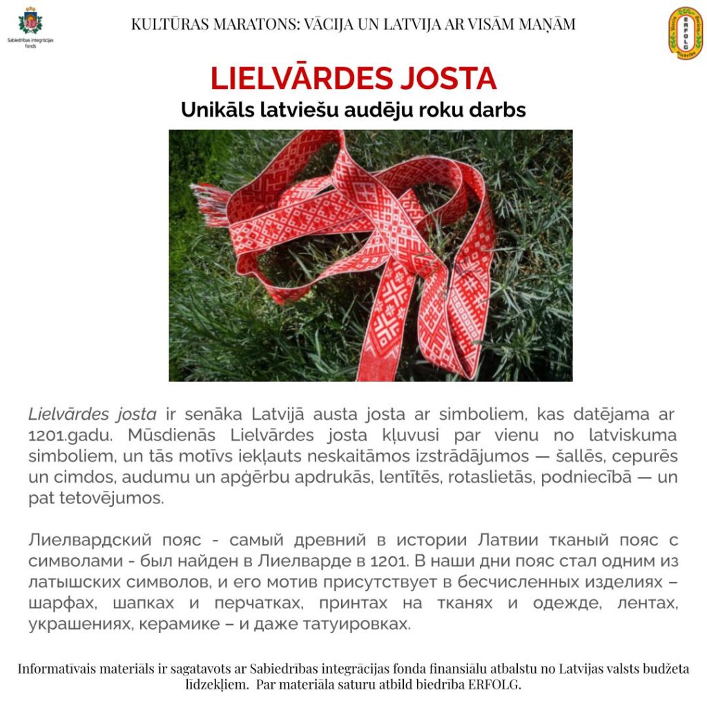 Tradīcijas, kas vieno mūs gadsimtiem – Dziesmu svētki, Lielvārdes josta un tautasdziesmas