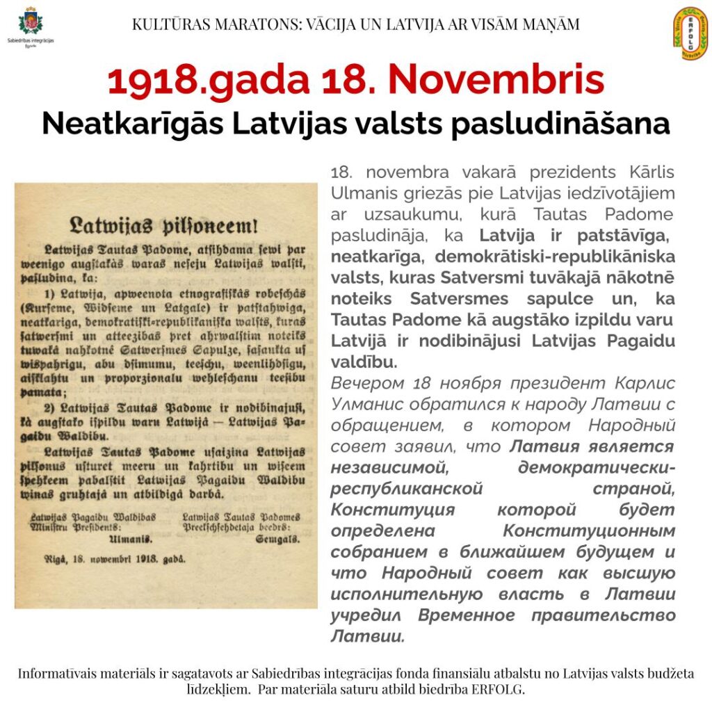 18. novembrī Latvija atzīmē savu neatkarības pasludināšanas dienu – brīdi, kad mūsu valsts ceļā uz brīvību ieguva skaidru virzienu. ![]()