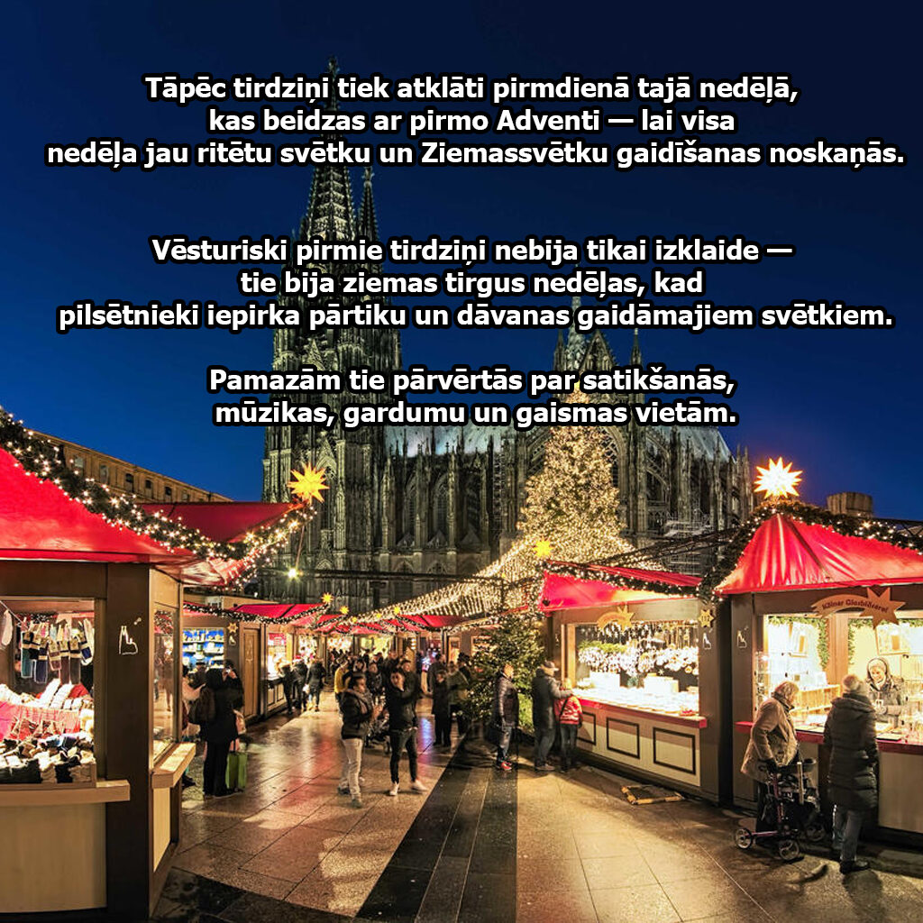 Šodien, 24. novembrī, Vācijā tiek atklāti Ziemassvētku tirdziņi. Un, lai gan parasti pirmdiena tiek uzskatīta par smagu nedēļas dienu, vāciešiem tā ir īsta svētku diena: pilsētas iemirdzas gaismās, gaisā virmo glintveina, ingvera cepumu un svaigu garšvielu aromāts.