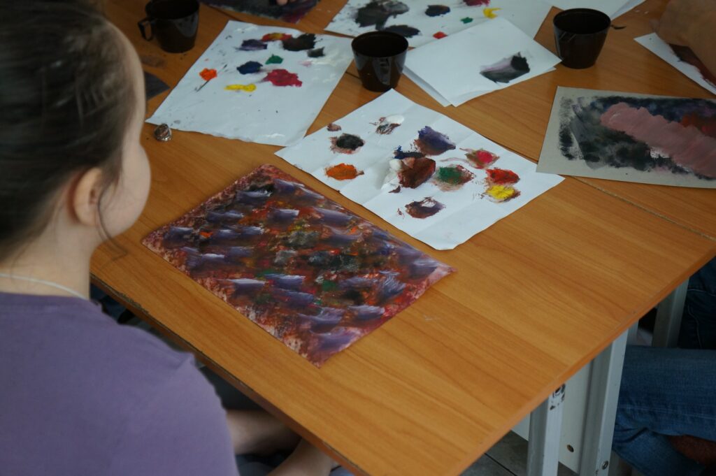 Осваивали дудлинг, пуантилизм, пейзажную и портретную живопись.
