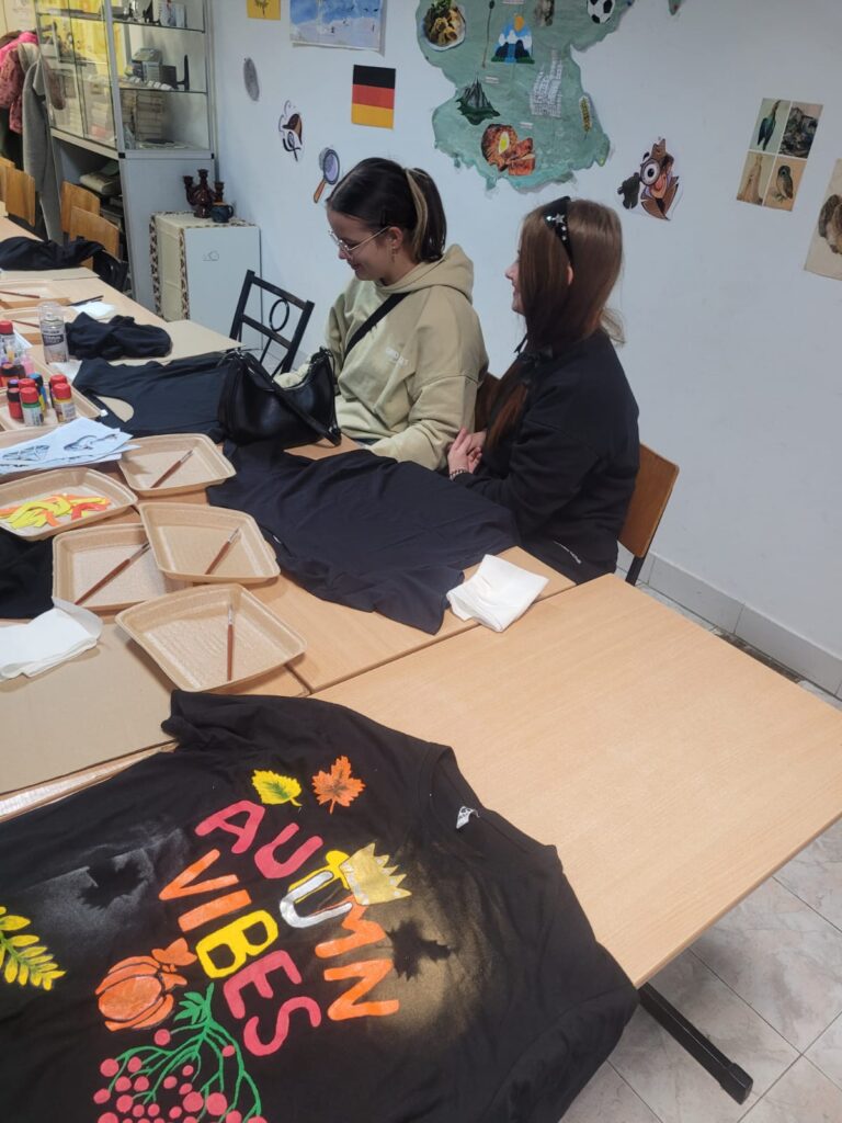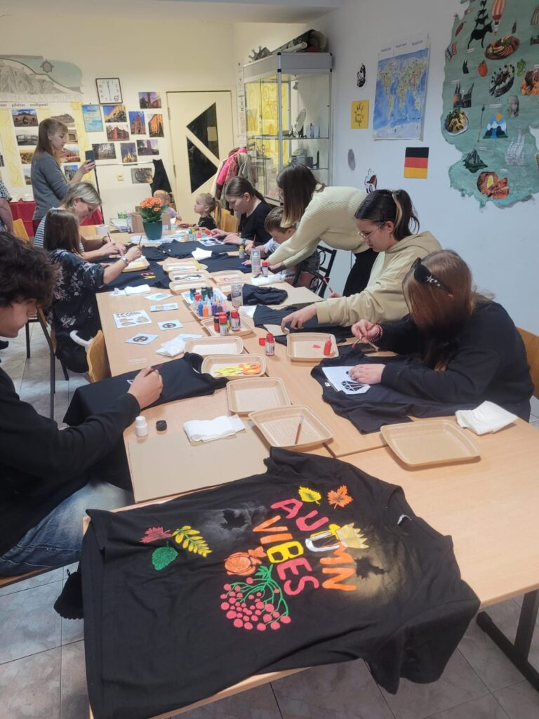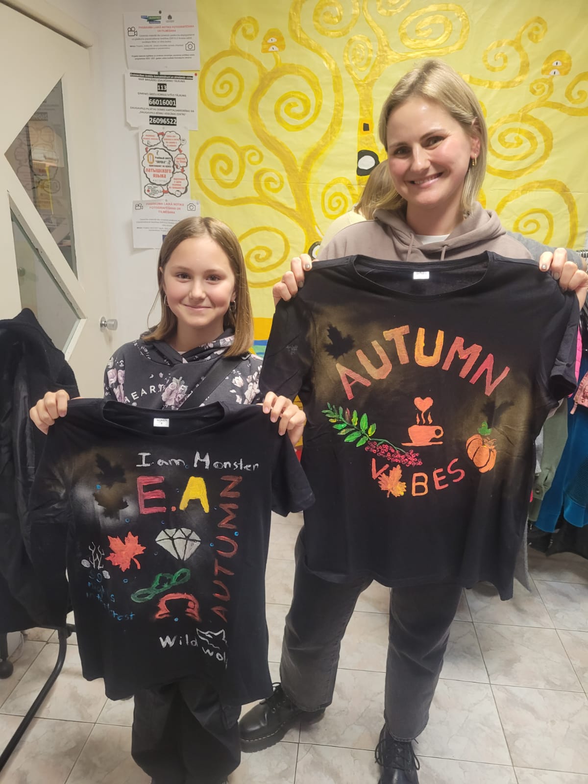 Мастерская была особенно ценна тем, что объединяла творческое самовыражение и знакомство с культурой. Молодые люди не только расписывали черные футболки в осенних мотивах, но и узнавали о традициях праздника Микели – одного из важнейших латвийских календарных праздников. Рассказ о Микеле, ритуалах белой козы и Джумисе как символе плодородия помог участникам лучше понять культурное наследие Латвии и значение праздников.