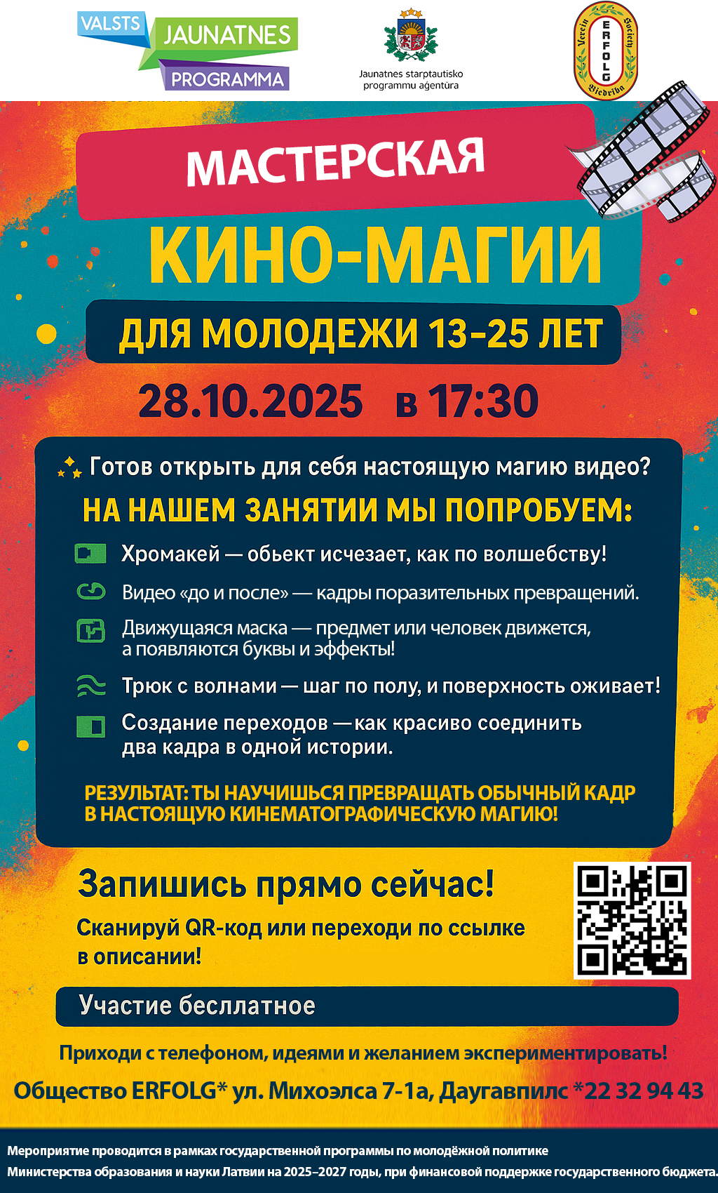 Тогда приходи на Мастерскую кино-магии — это будет увлекательно, креативно и абсолютно бесплатно!