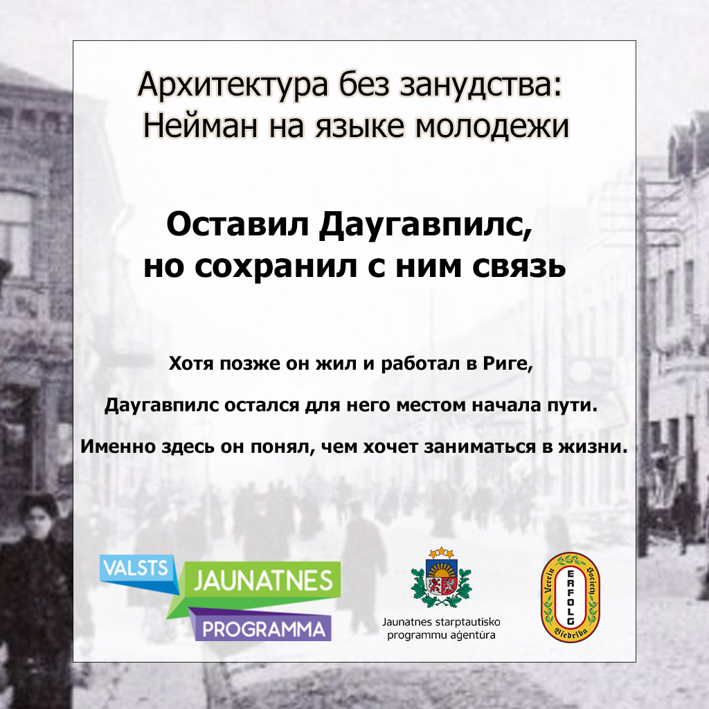 Хотя позже жил и работал в Риге, именно здесь, в Даугавпилсе, Нейман понял, чем хочет заниматься в жизни.