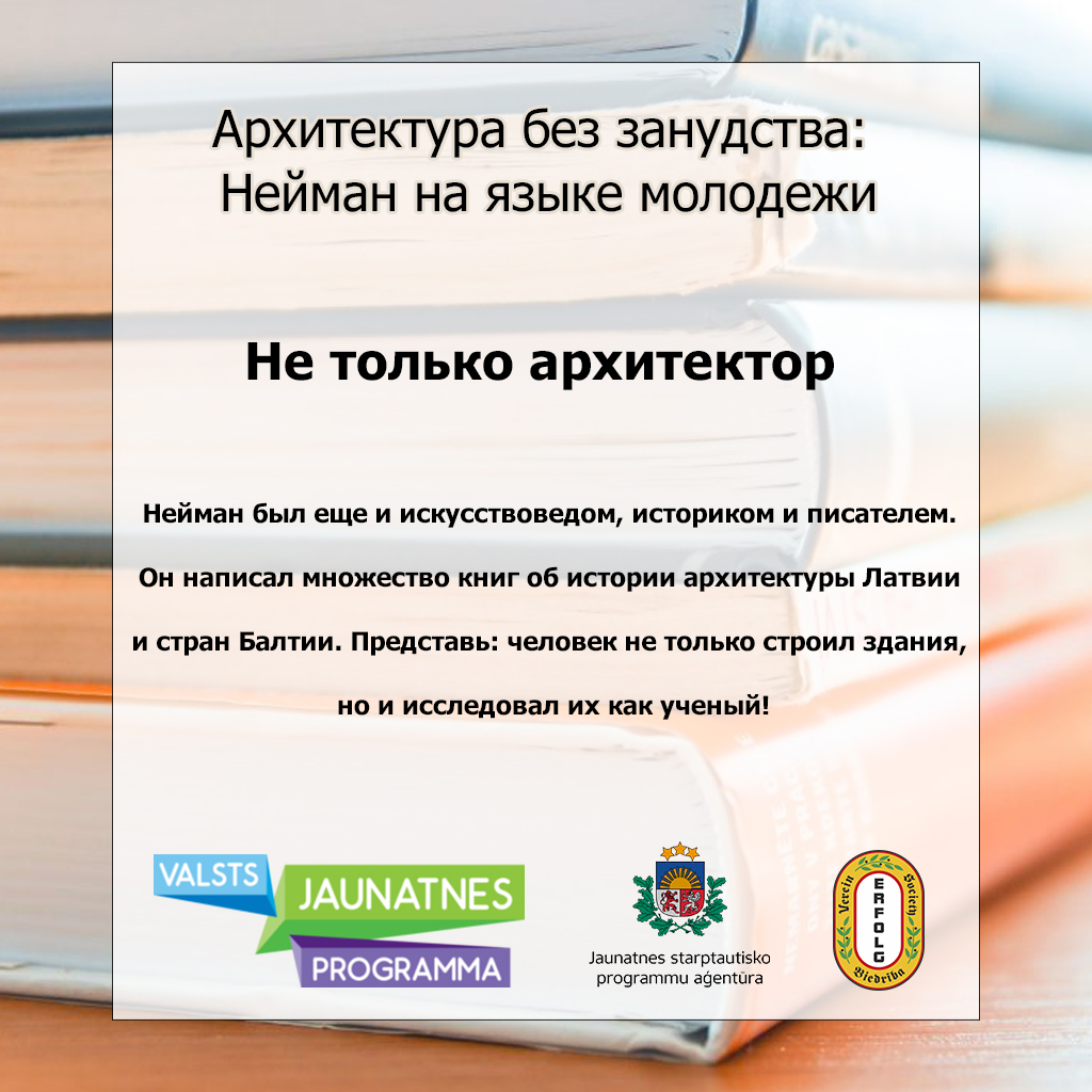 Первым академически признанным искусствоведом в Прибалтике – Нейман был первым, кто занялся исследованием истории искусства и архитектуры с научной точки зрения и получил академическое признание в этой области.