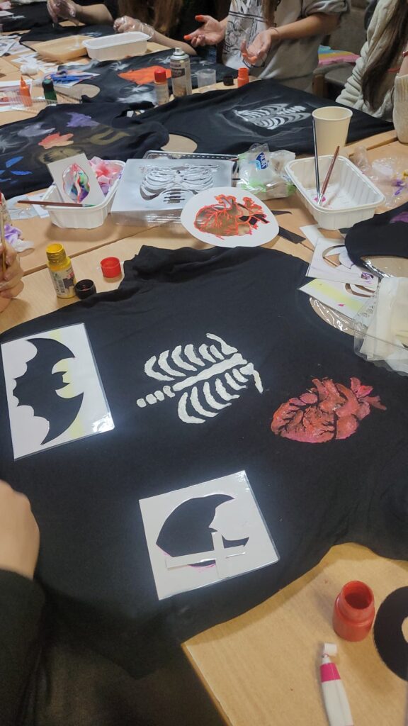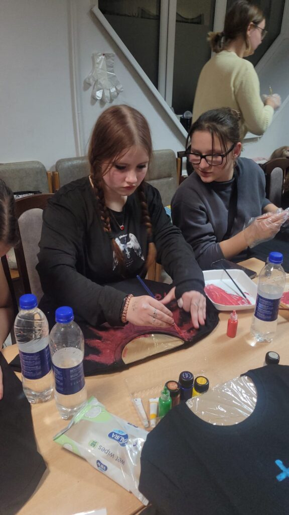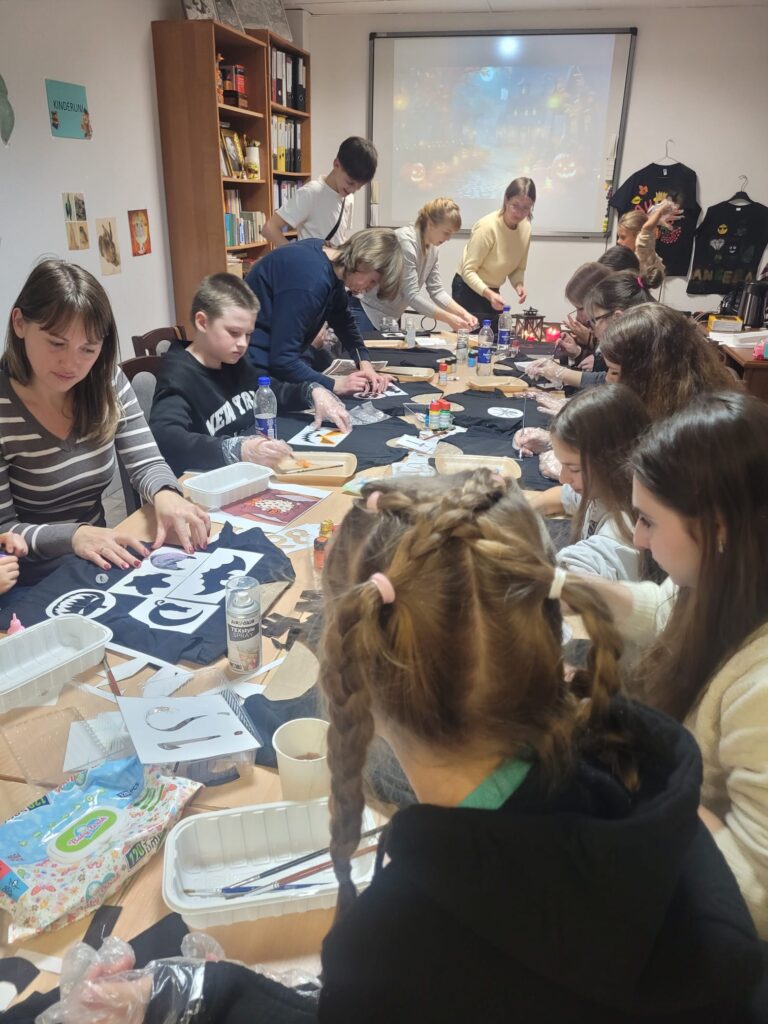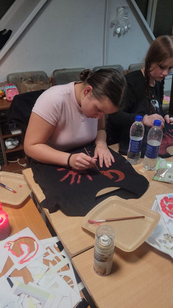 Молодёжь превратила обычные чёрные футболки в настоящие произведения искусства — каждая работа получилась яркой, оригинальной и со своим характером. ![]()