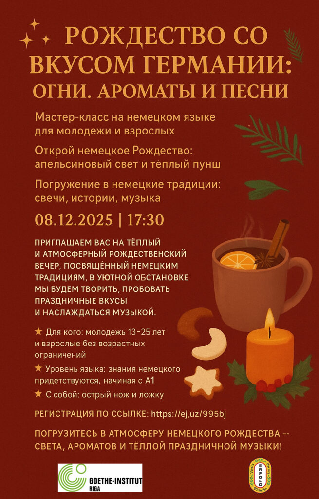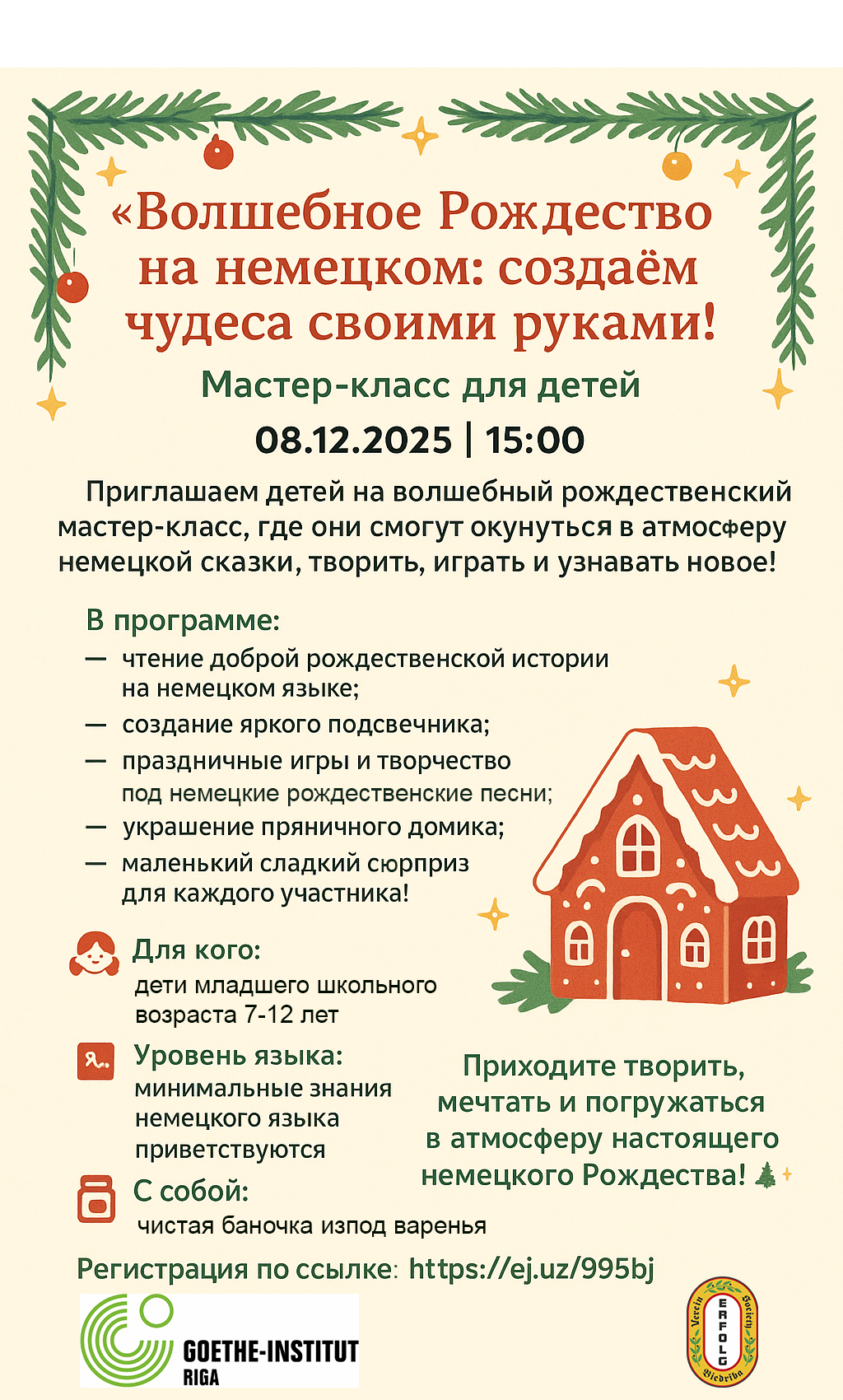 Приглашаем детей, молодежь и взрослых на волшебные рождественские мастер-классы, где вас ждут творчество, игры, музыка и ароматы настоящего немецкого праздника!