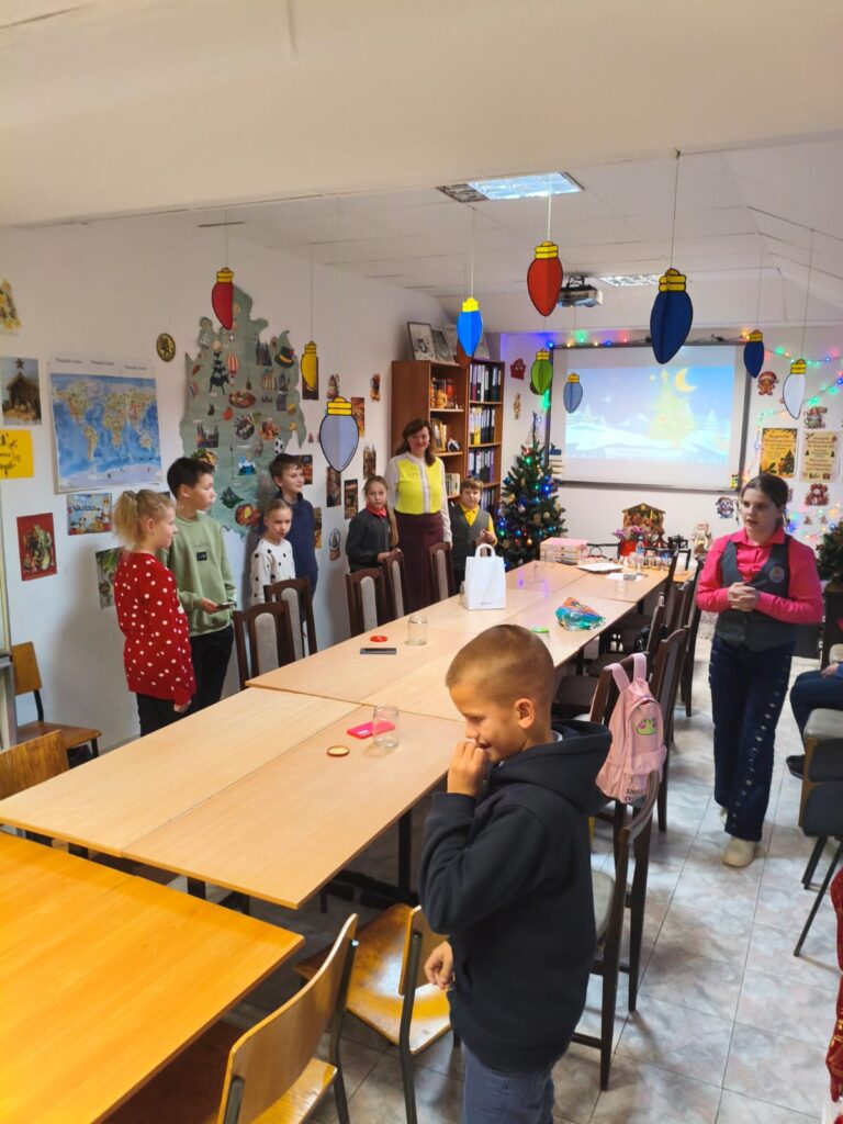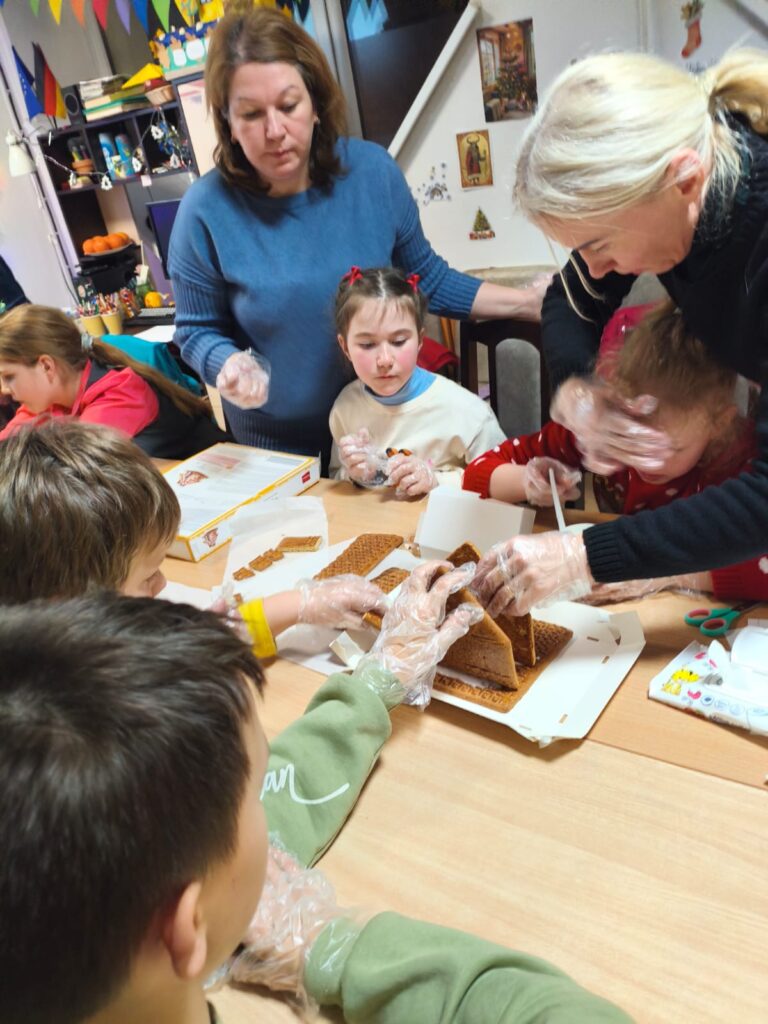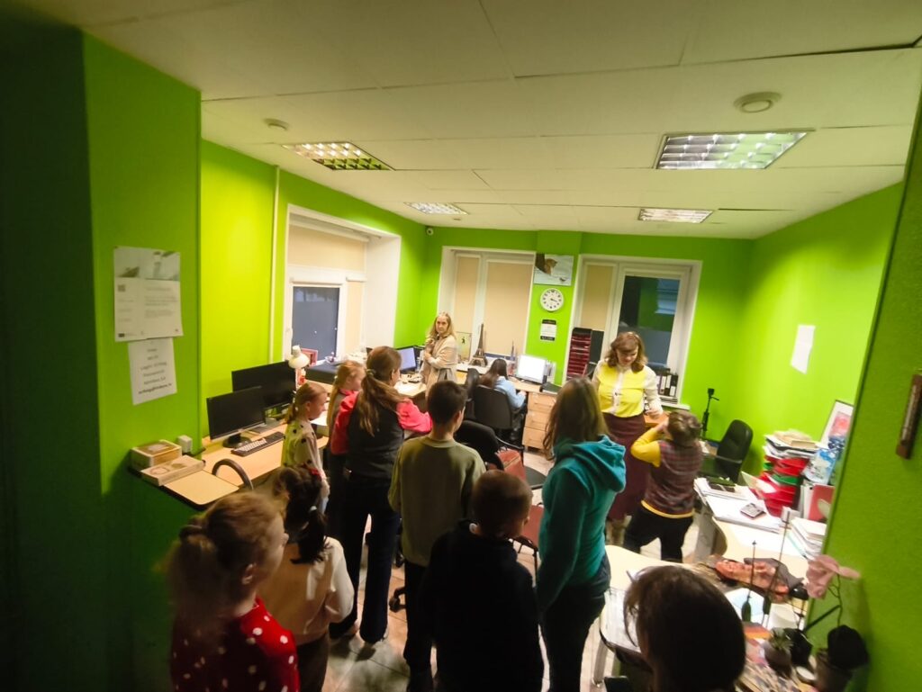 Наше праздничное приключение началось со знакомства и весёлых игр. Дети познакомились с ведущей Юлией — добровольцем из Германии, — и сразу же включились в атмосферу праздника. Разминка Tanz der Weihnachtswichtel (танец рождественских гномов) подарила много смеха и движения: музыка, игра и танец помогли ребятам быстро подружиться и почувствовать себя частью маленького немецкого чуда. ![]()
