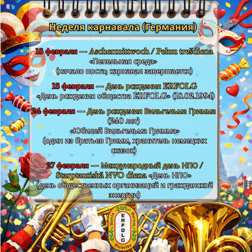 • 18 февраля — Aschermittwoch / Pelnu trešdiena