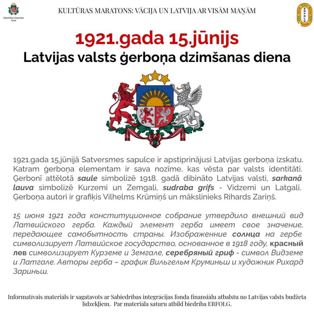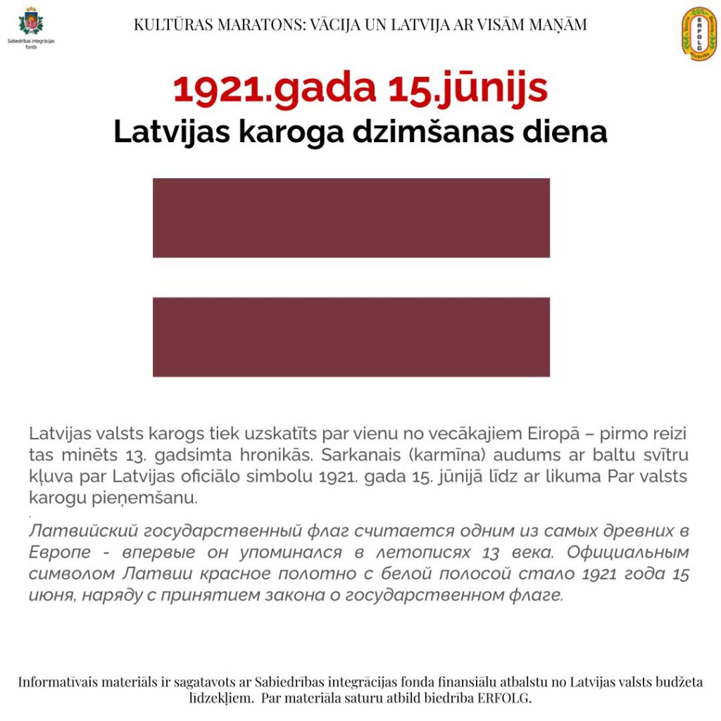 Красно-бело-красный флаг, герб с тремя звездами, торжественная народная молитва «Боже, благослови Латвию» – это символы, которые с момента основания независимой Латвии объединяют нас и ежедневно напоминают о нашей идентичности, ценностях и принадлежности к своей стране.