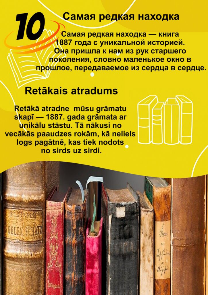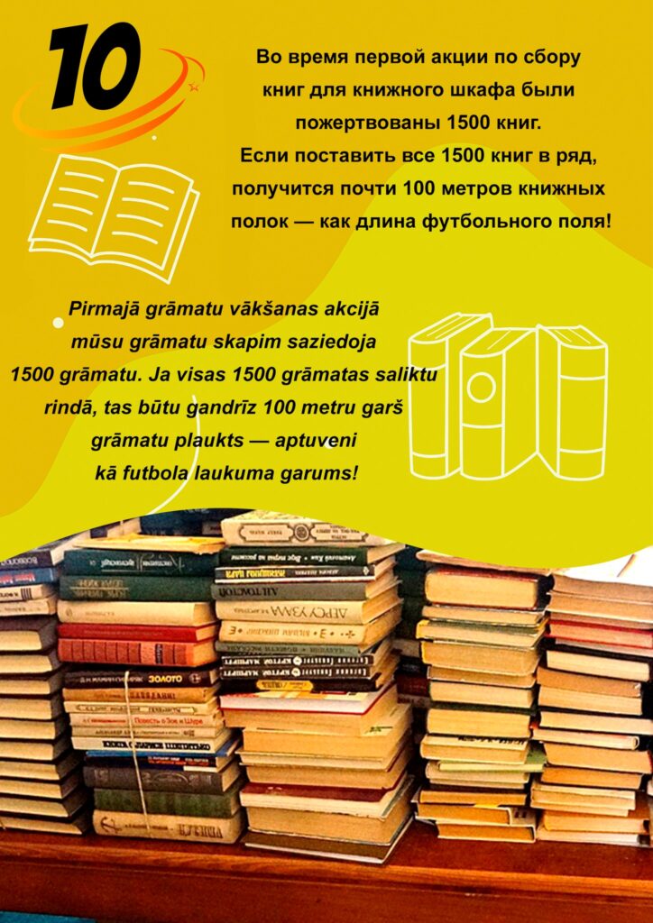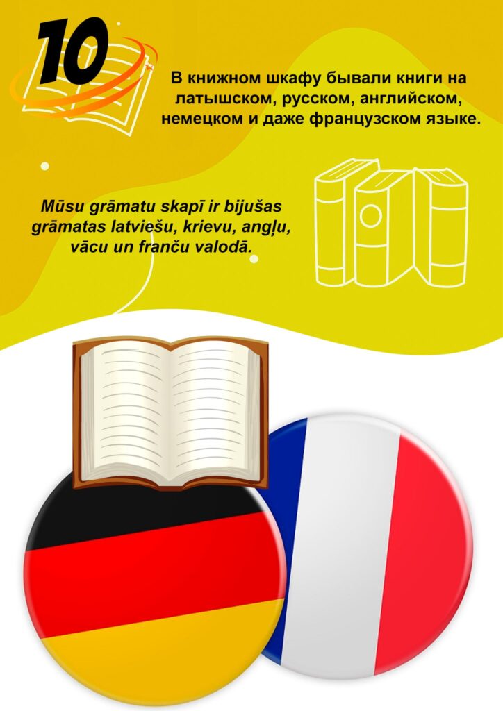 книги были на латышском, русском, английском, немецком и других языках