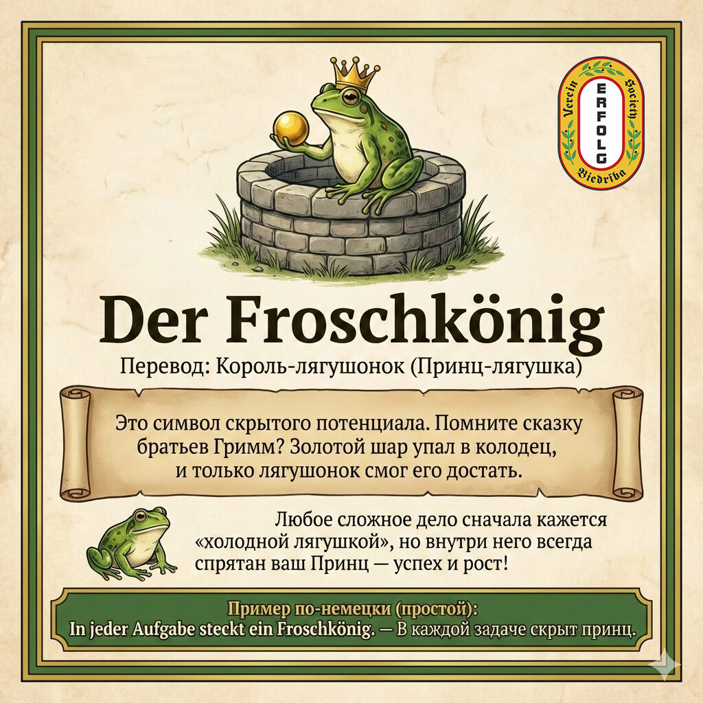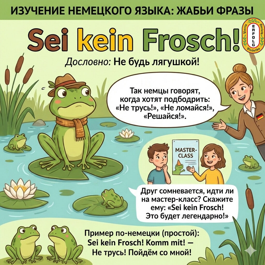 В этой карусели вас ждёт мини-лексика (кто есть кто: Frosch и Kröte) и 5 «жабьих» выражений, которые немцы реально используют: