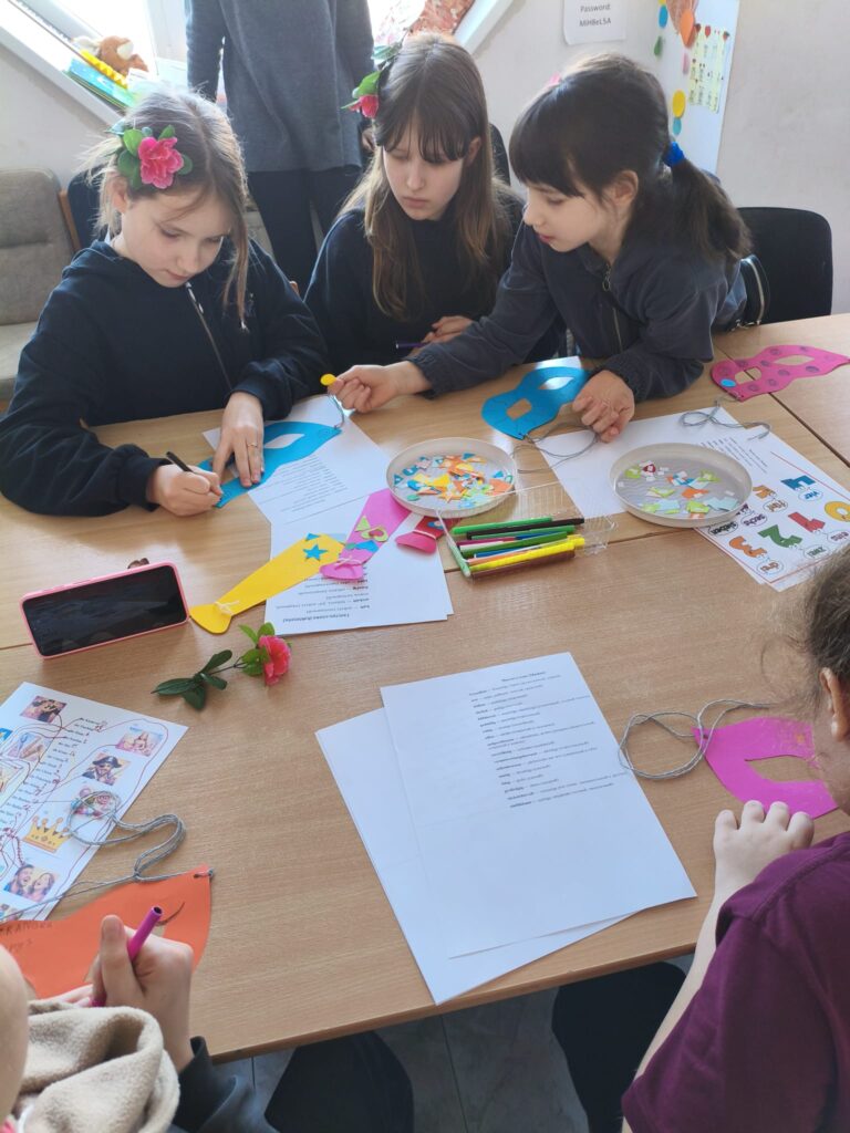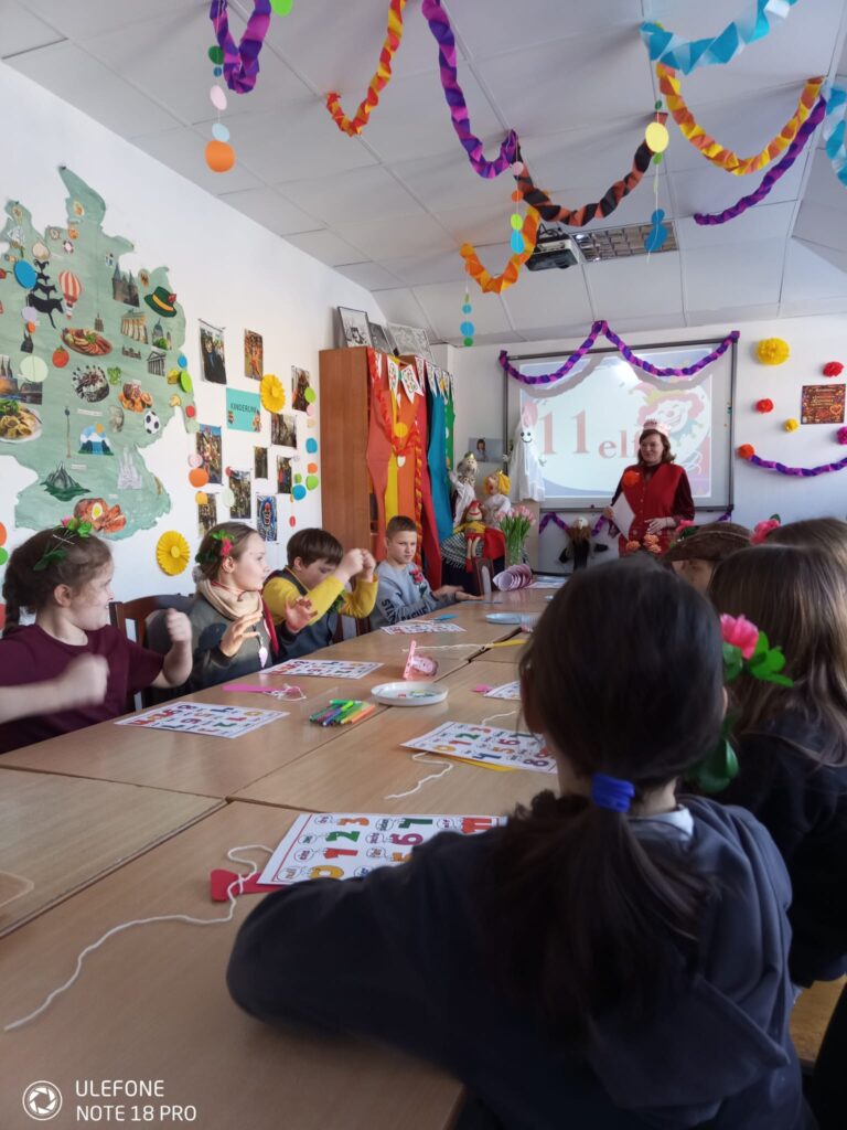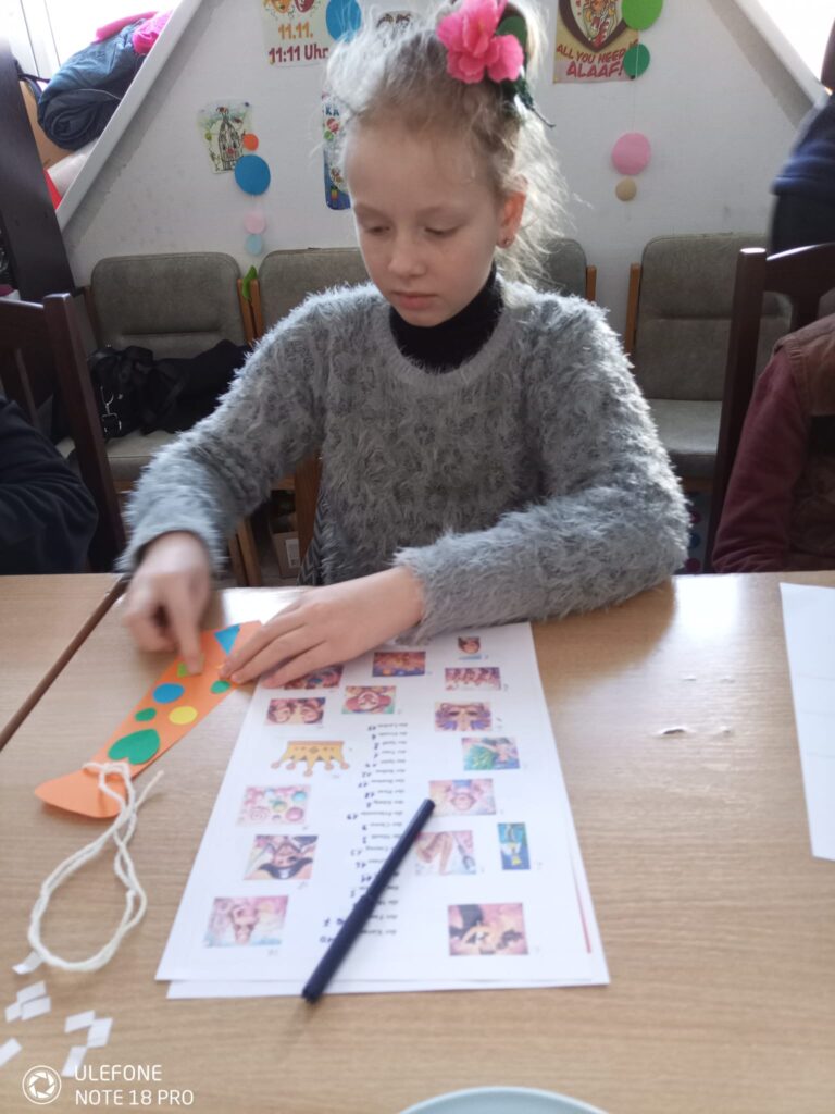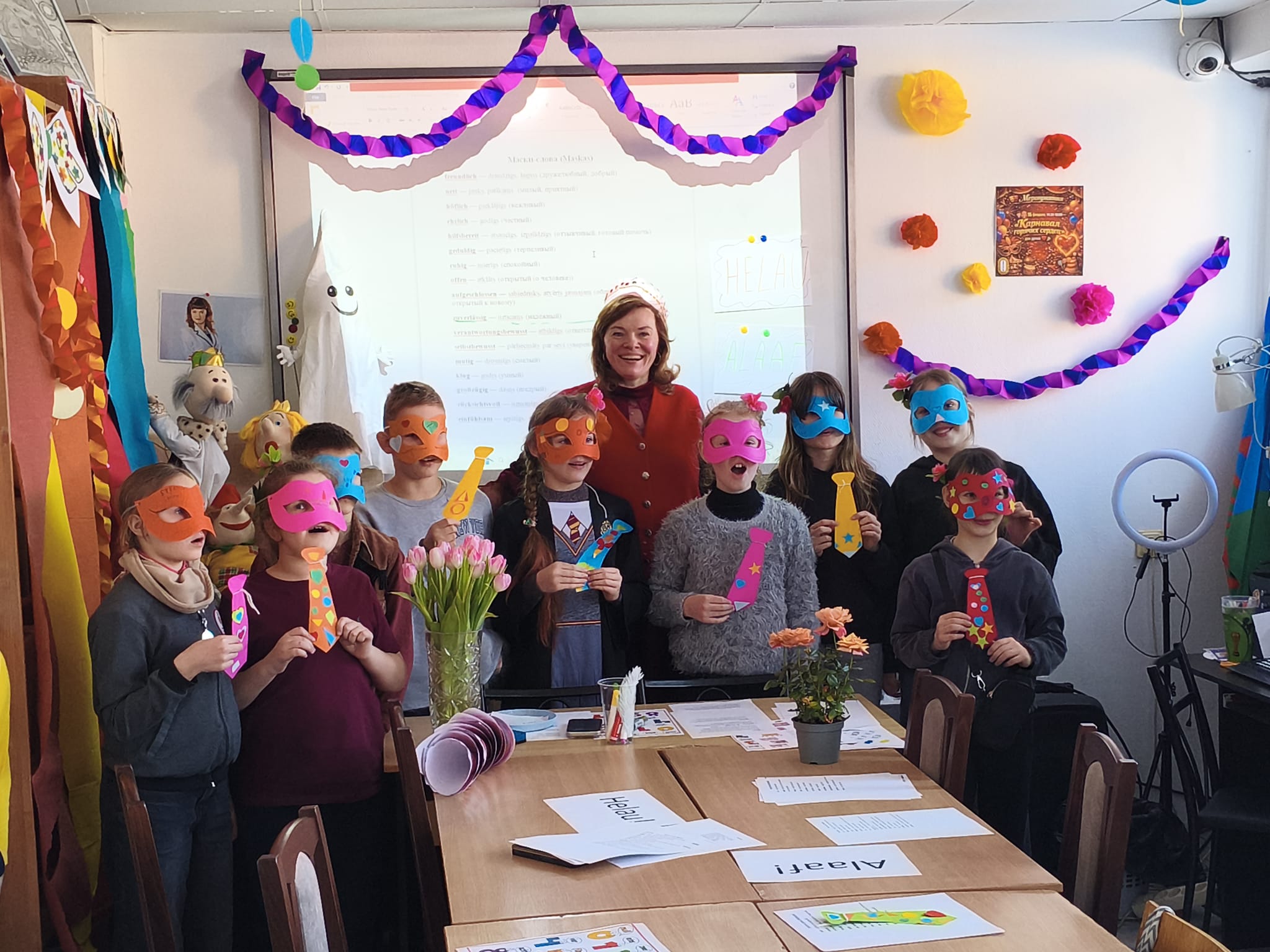 Вдохновившись швабско-алеманнскими традициями, дети создавали маски. На обратной стороне каждый написал качество, которое хочет «воспитать» в себе этой весной. Парад масок с топотом и шумом дважды обошел зал — теперь зиме точно не захочется возвращаться!