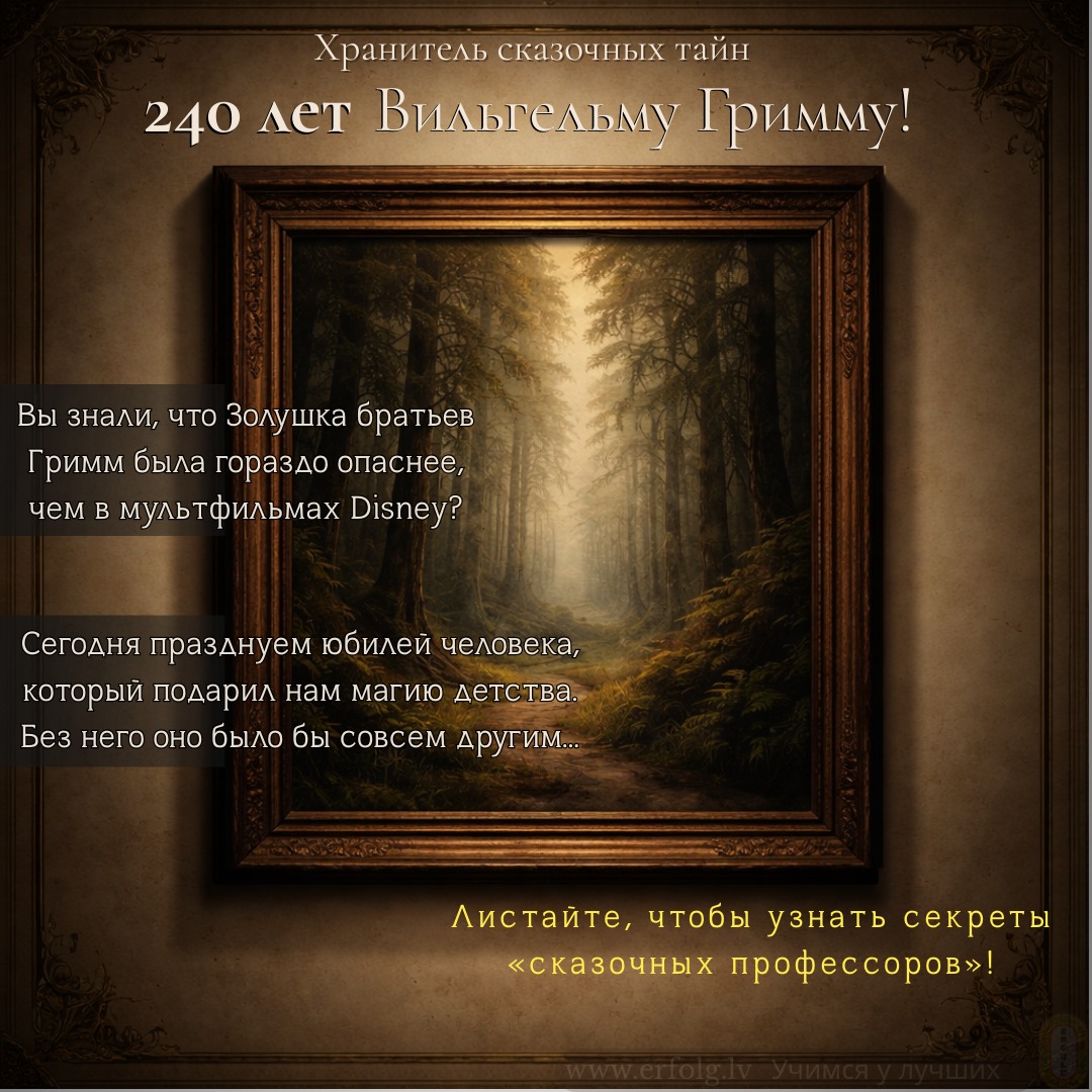 Завтра мы празднуем 240-летие человека, без которого наше детство было бы совсем другим. Вильгельм Гримм — не просто «сказочник», а настоящий охотник за исчезающими смыслами.