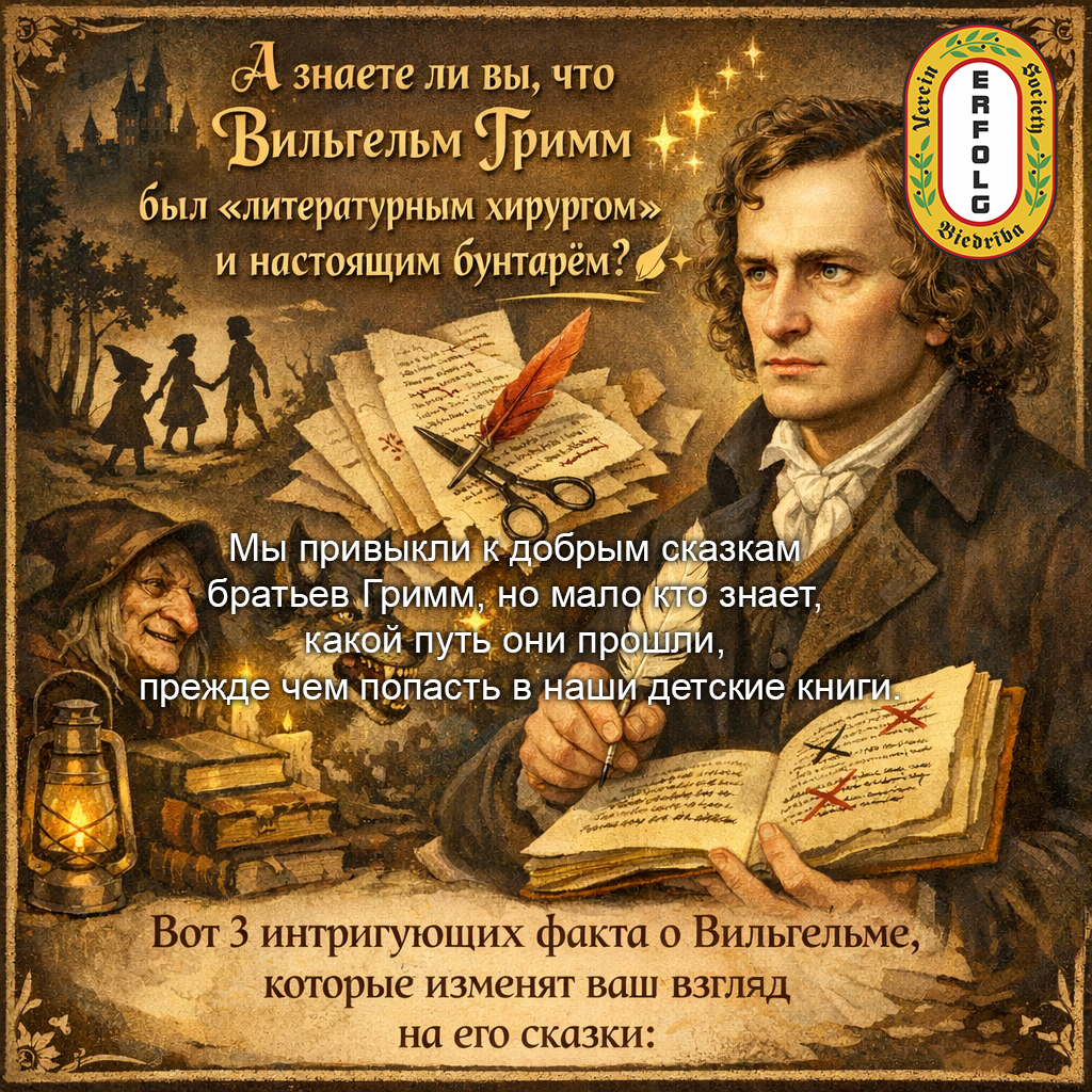 Топ-3 факта о Вильгельме Гримме, которые вы не знали! 📖🔥